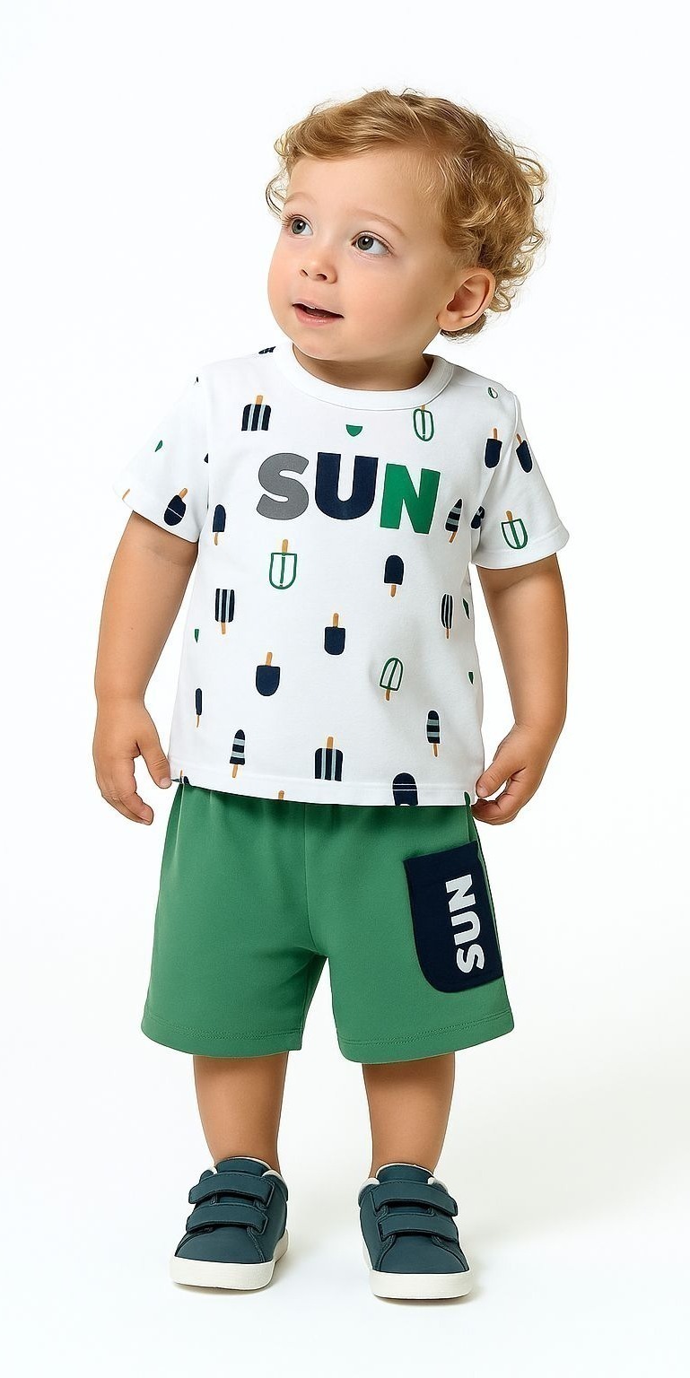 Conjunto Sun Kyly é a escolha perfeita para trazer praticidade e estilo à moda infantil. Produzido em 100% algodão, garante maciez, frescor e liberdade de movimentos para acompanhar as brincadeiras do dia a dia. Com estampa divertida de picolés e detalhes em pompom, deixa o look lúdico e cheio de alegria.